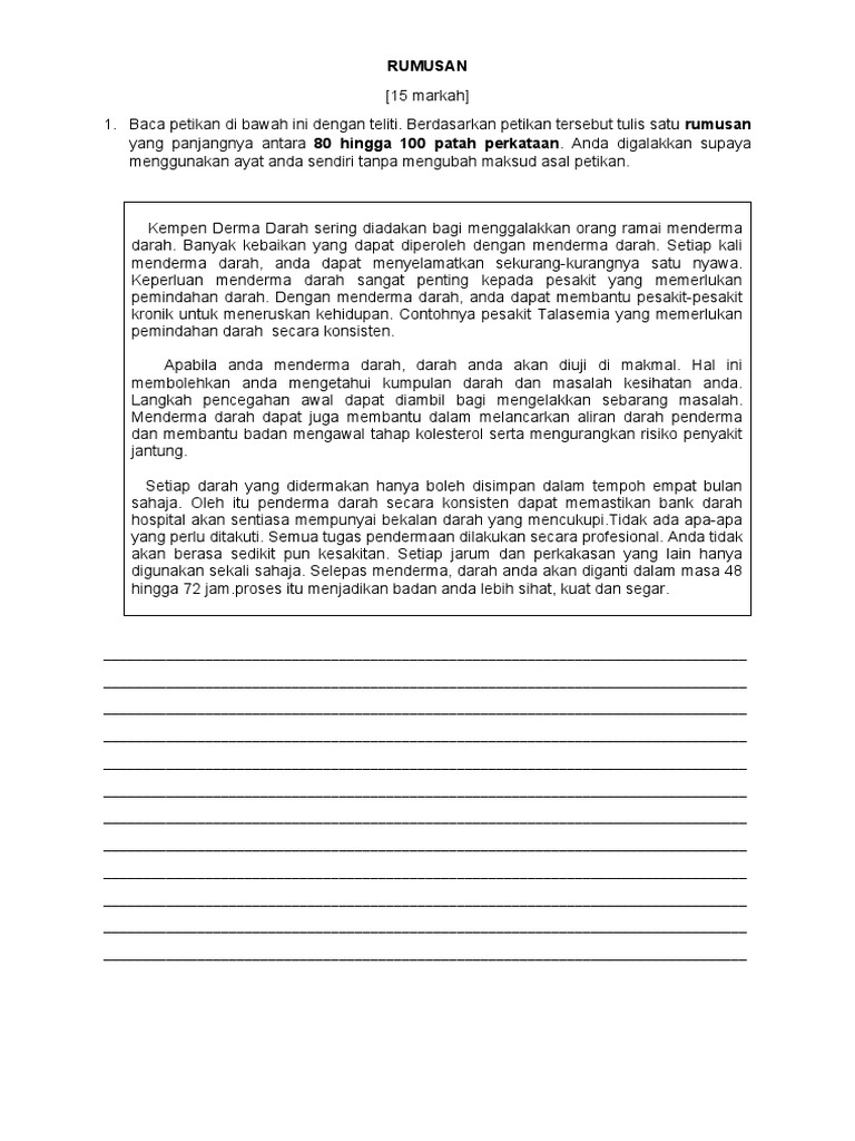 Soalan Rumusan F3 Kempen Derma Darah Pdf